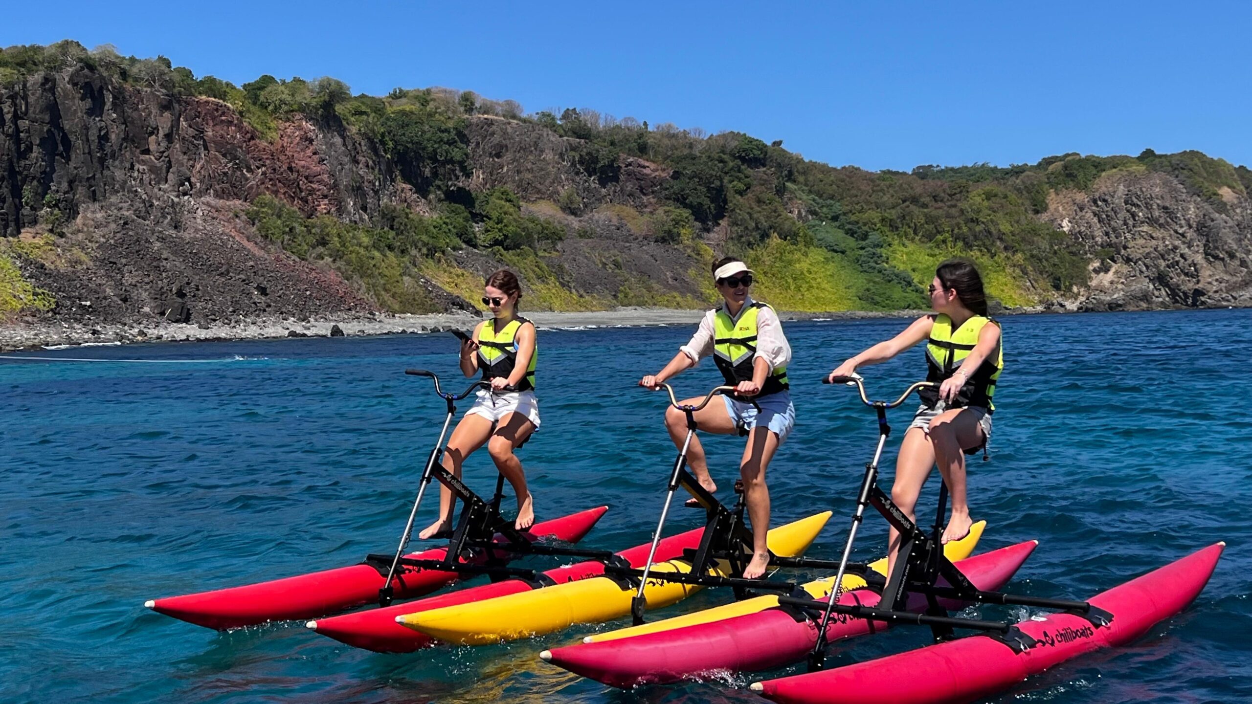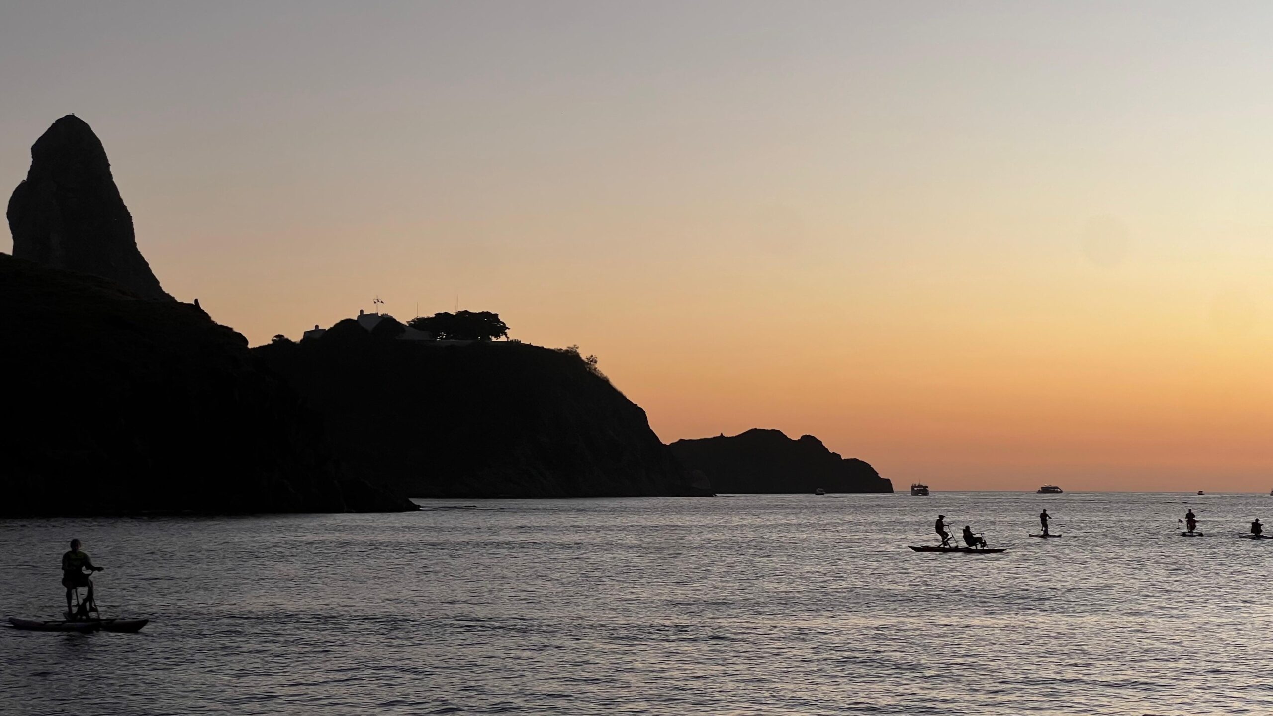 50 minutos de pedalada silenciosa sobre a água — experiência perfeita pra tentar ver golfinhos quando eles cruzam a baía.