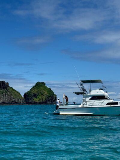 A lancha queridinha da ilha: 4h de rolê com vista dos cartões-postais, banho, planasub e serviço de bordo no fim da tarde.